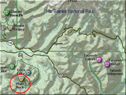 Range, and to the east-southeast are the Goat Rocks, followed to