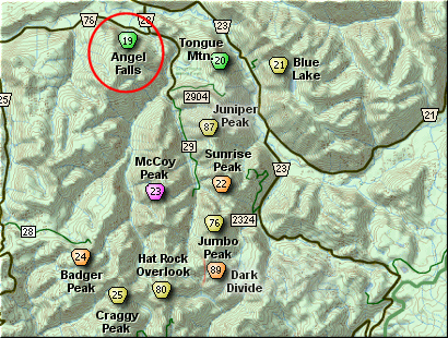 Bear left and head downhill to Angel Falls. This