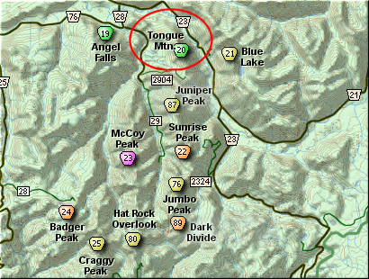 to Tongue Mountain to the north or Juniper Peak to the south.