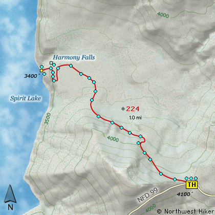another mile and you will come to the trailhead for the Harmony Falls hike.