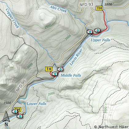 for hikers. To view the two other major falls on the Lewis River in this area,