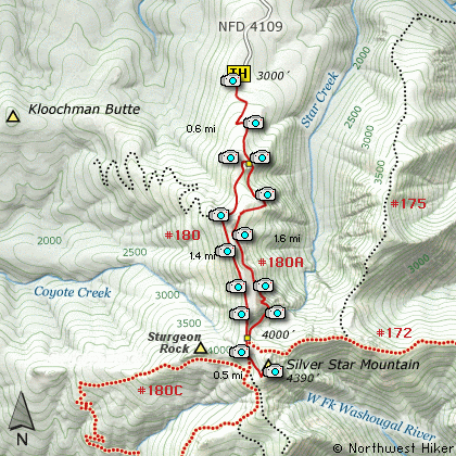 cross the East Fork of the Lewis River and head south for 2.4 miles. Turn left