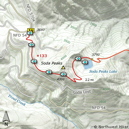the eastern Soda Peak. Now the trail descends