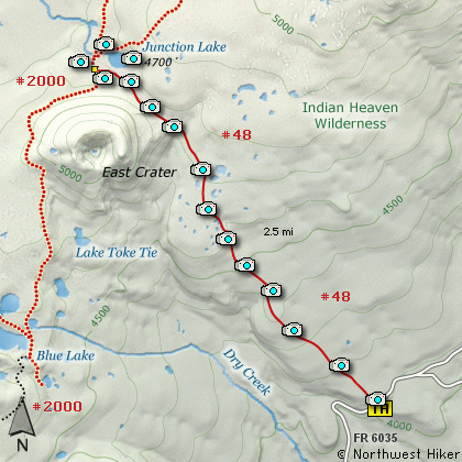 popular Thomas Lake or Cultus Camp approach to Indian Heaven.