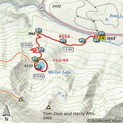 hike begins at the highway 26 trail head. Most of the hike wanders through dense forest.