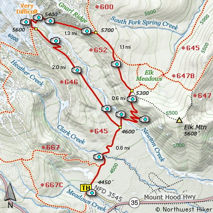 Note: This is the same trailhead for the Mt. Hood Meadows Loop hike, the Elk Meadows hike, the Newton Creek Loop hike and the Lamberson Butte/Gnarl Ridge hike.d.
